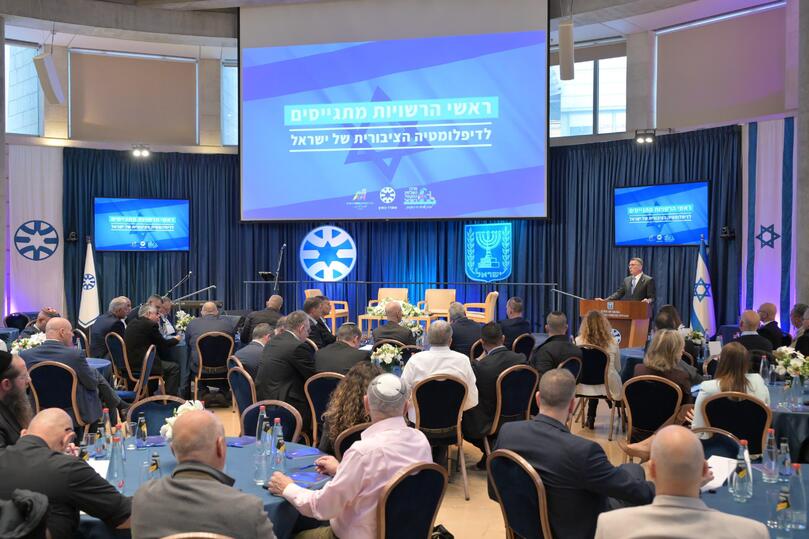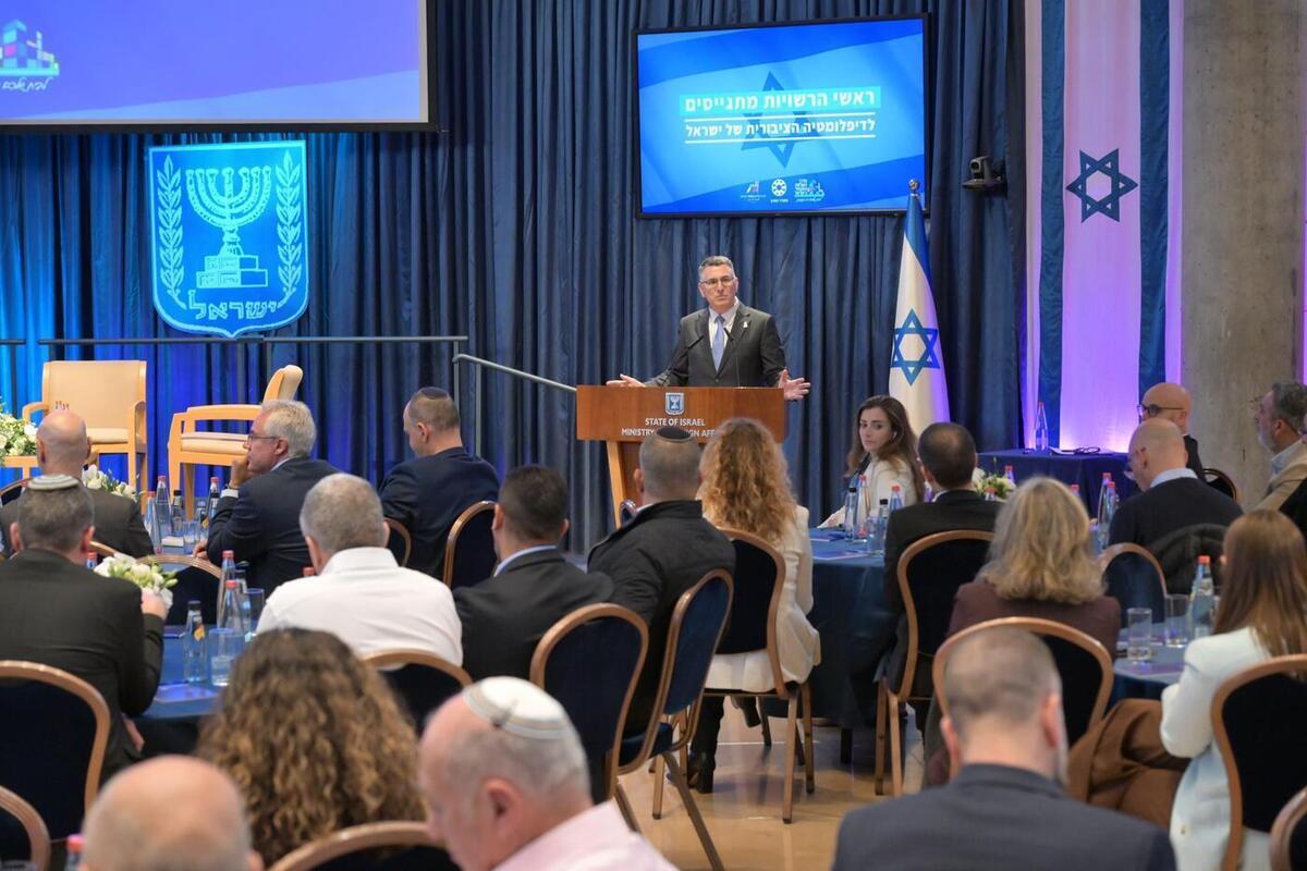 В министерстве иностранных дел прошла конференция «Главы местных властей вступают в битву за мировое общественное мнение», в которой приняли участие десятки глав местных советов со всей страны под руководством министра иностранных дел Гидеона Саара.