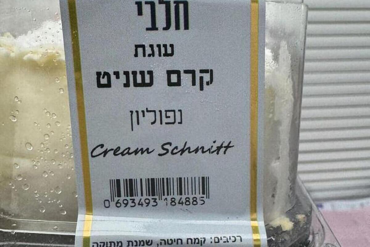 По результатам проверки, проведённой продовольственной при окружном управлении здравоохранения Иерусалима, установлено, что на этикетке продукта «Торт Крем Шнит Наполеон (молочный)» не указано наличие аллергена желатина рыбного происхождения — как в разделе об аллергeнах, так и в списке ингредиентов.